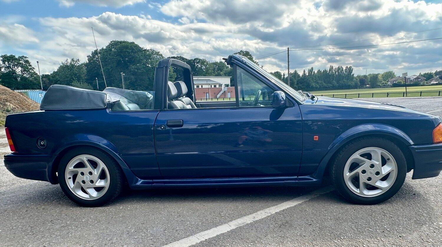 We are proud to offer this incredibly rare and beautifully preserved 1990 Ford Escort XR3i SE500 Cabriolet, finished in the iconic factory Pacifica Blue metallic – a true collector’s classic.